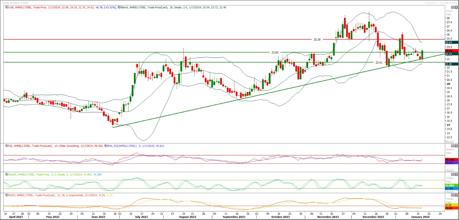 Our Preference: Buy above 24.50 with strict stop loss of 23 and profit target at 26.50.