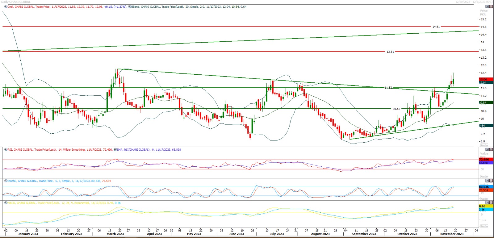 GGL after successful breakout above 12.00 Rs on weekly chart and accomplishment of previous given targets now GGL have opened new doors for a spike.