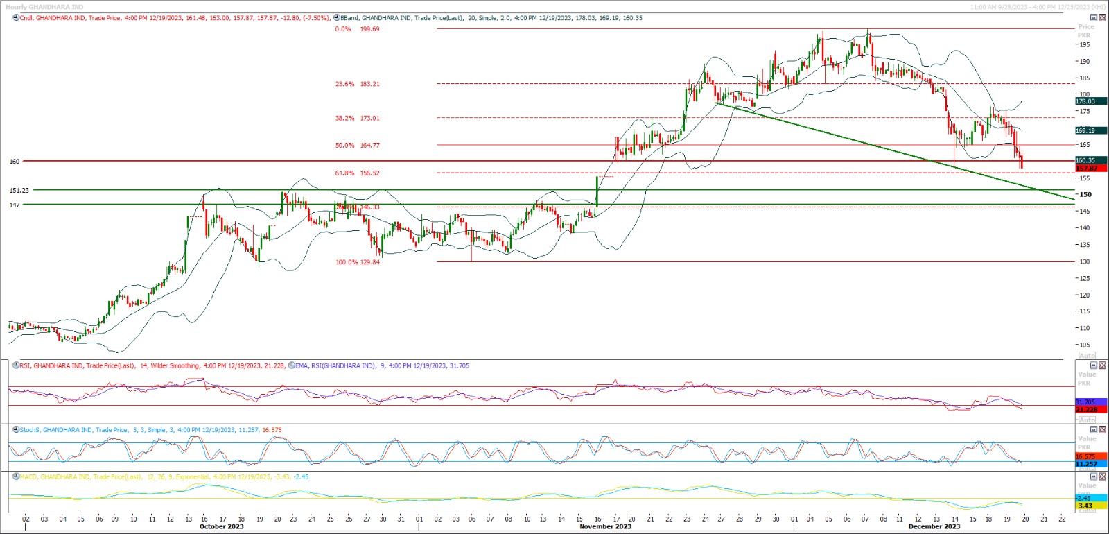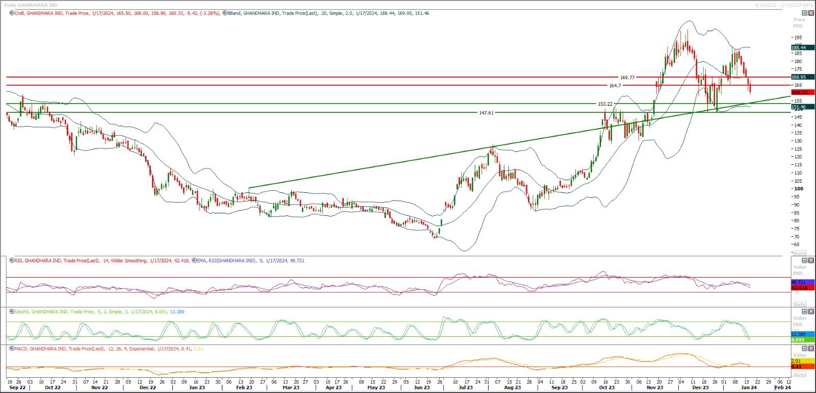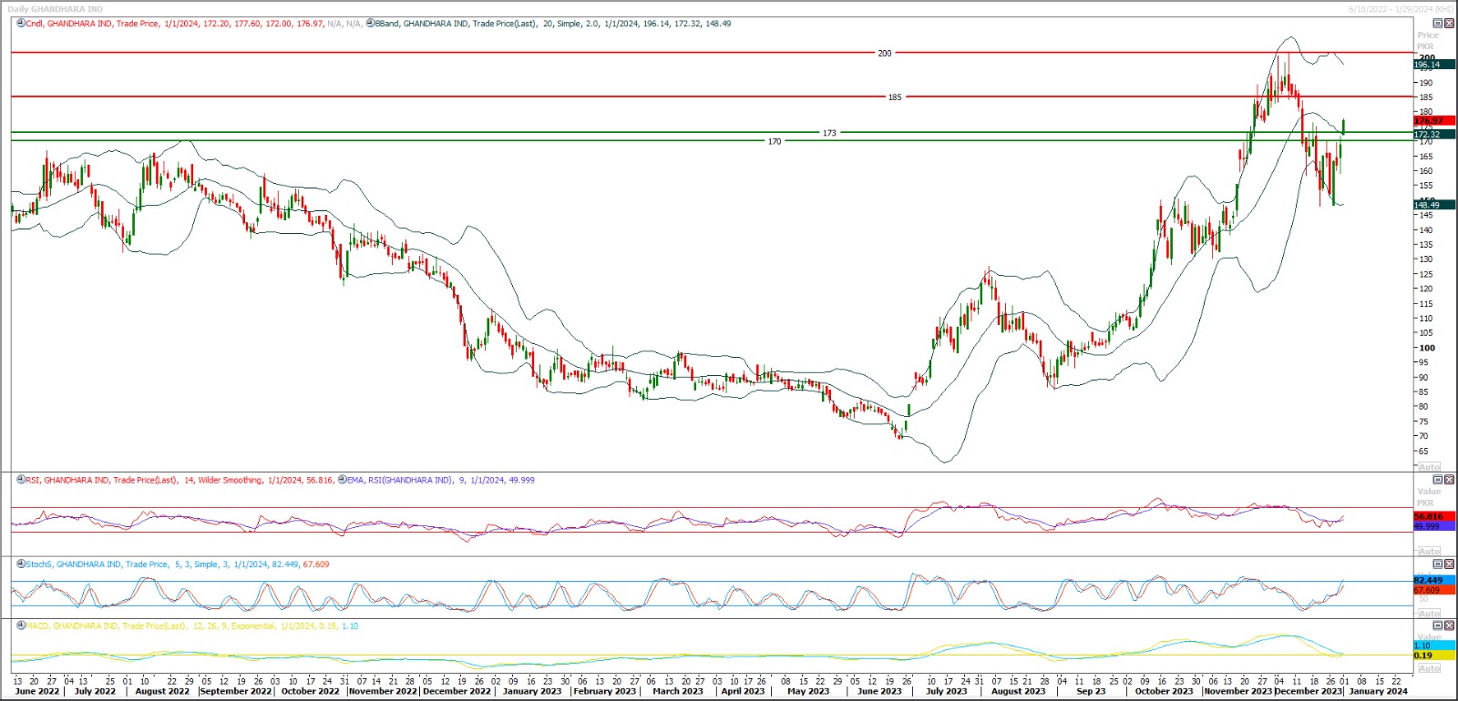 Buy above 186 with strict stop loss of 183 is key resistant region for GHNI therefore it's recommended to stay cautious around this region. Breakout above 197.50 will call for 202 and 207