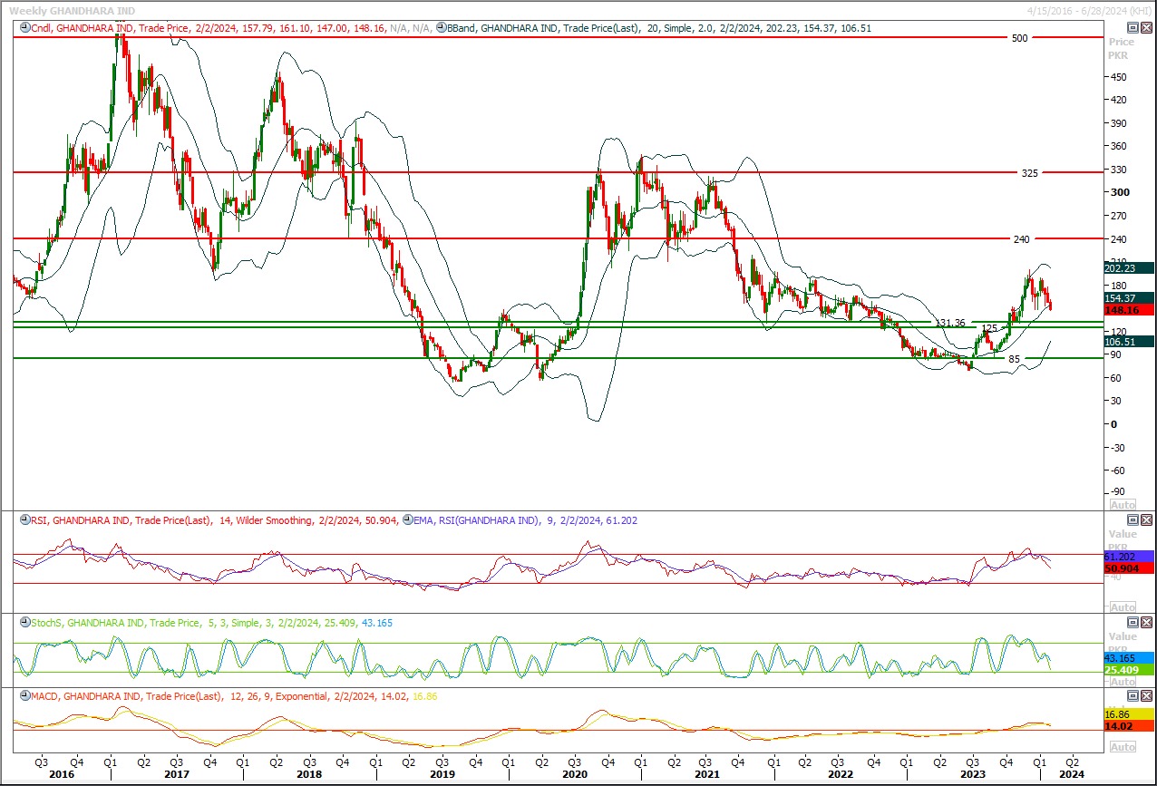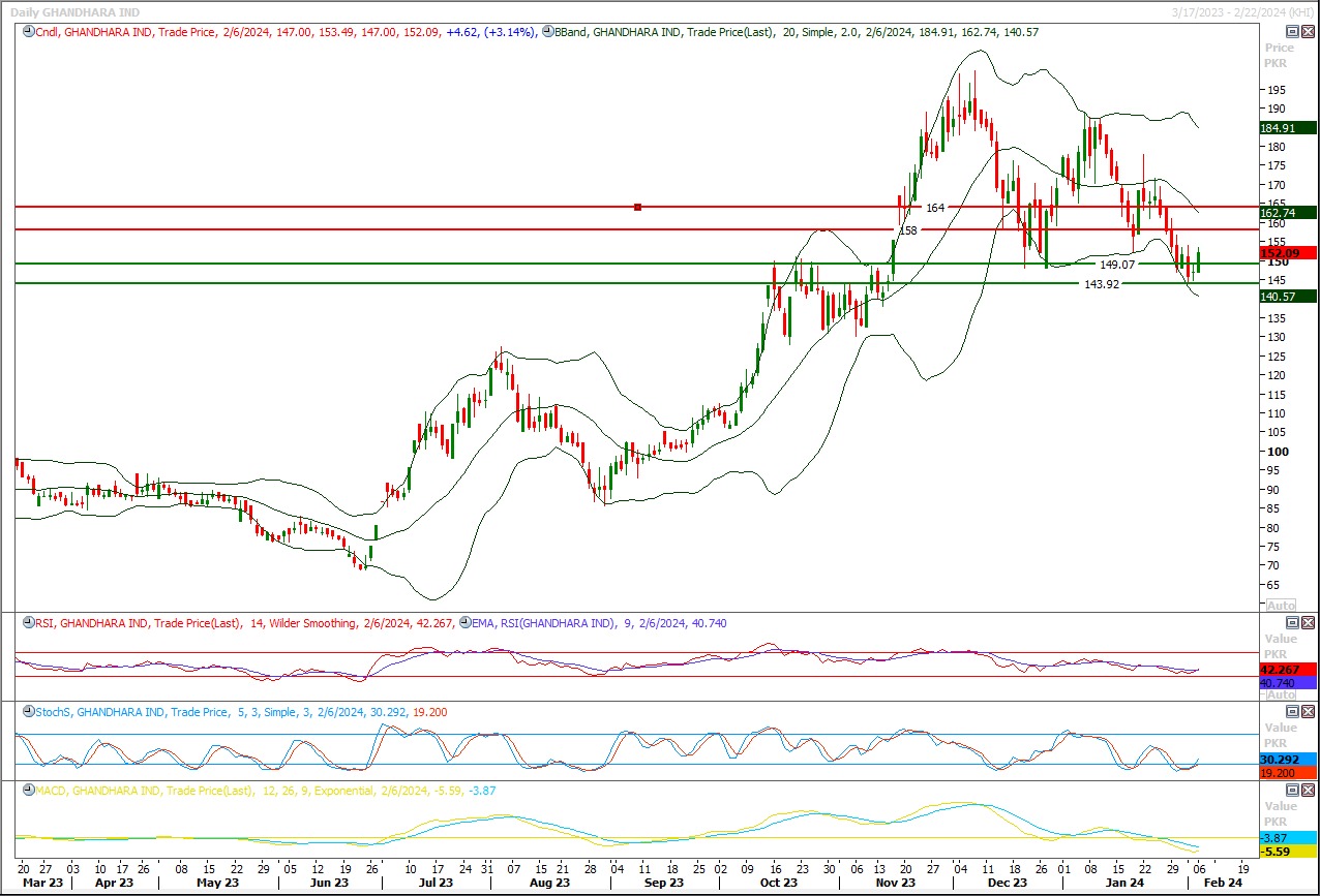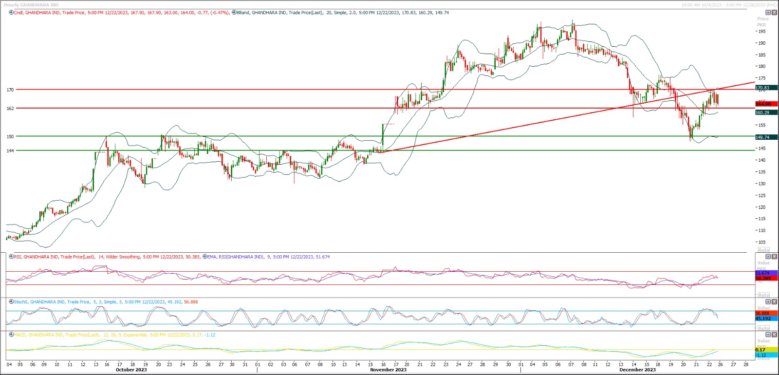 Buy above 186 with strict stop loss of 183 is key resistant region for GHNI therefore it's recommended to stay cautious around this region. Breakout above 197.50 will call for 202 and 207
