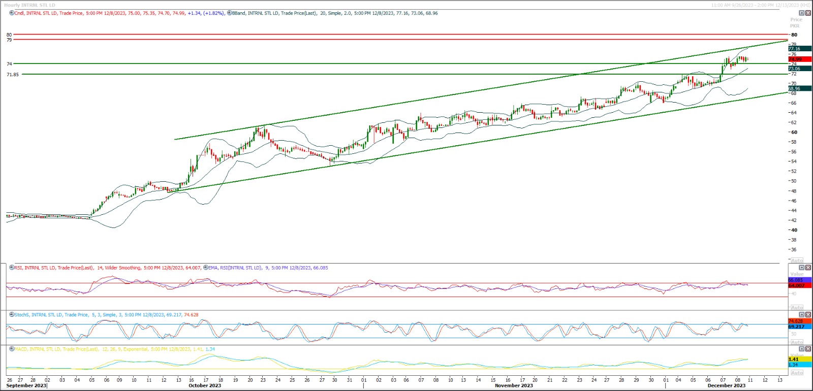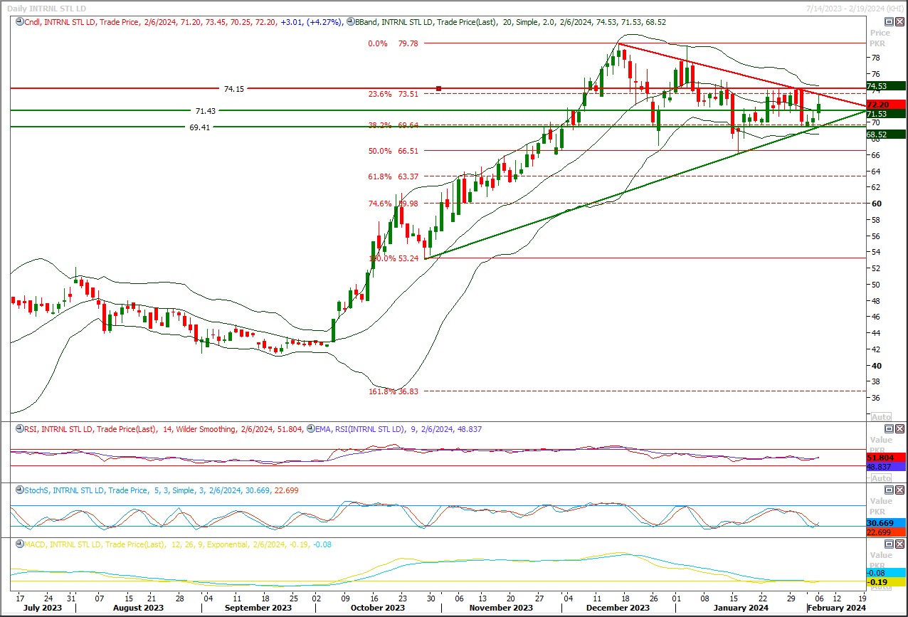 Buy as long as trading above 74 with strict stop loss of 71.85 and profit target at 79 and 80 would try to react as key resistanceTECH NOTE: ISL is moving inside a bullish price channel for expansion of its recent correction.