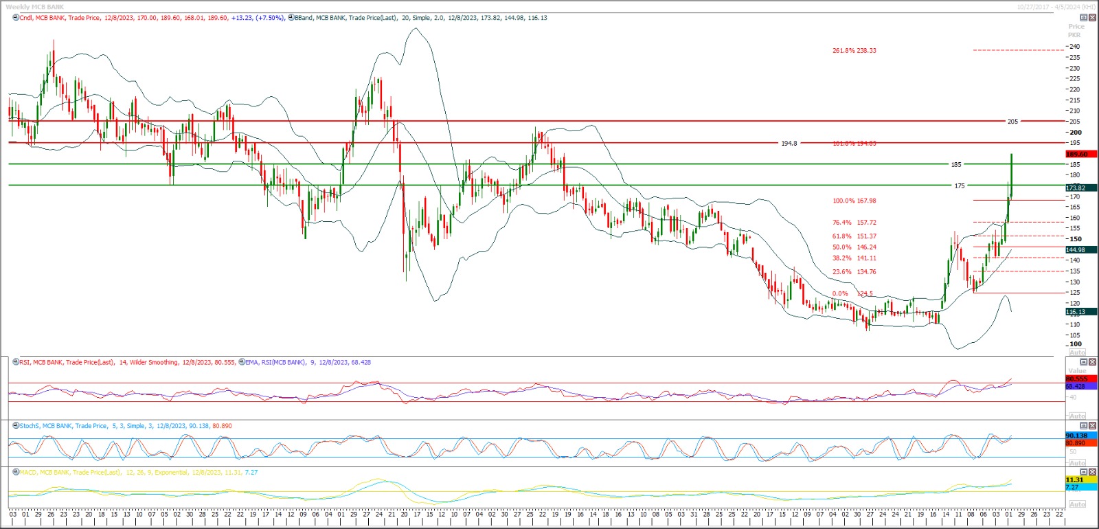 TECH NOTE: MCB is trying to approach its 161% expansion on weekly chart.