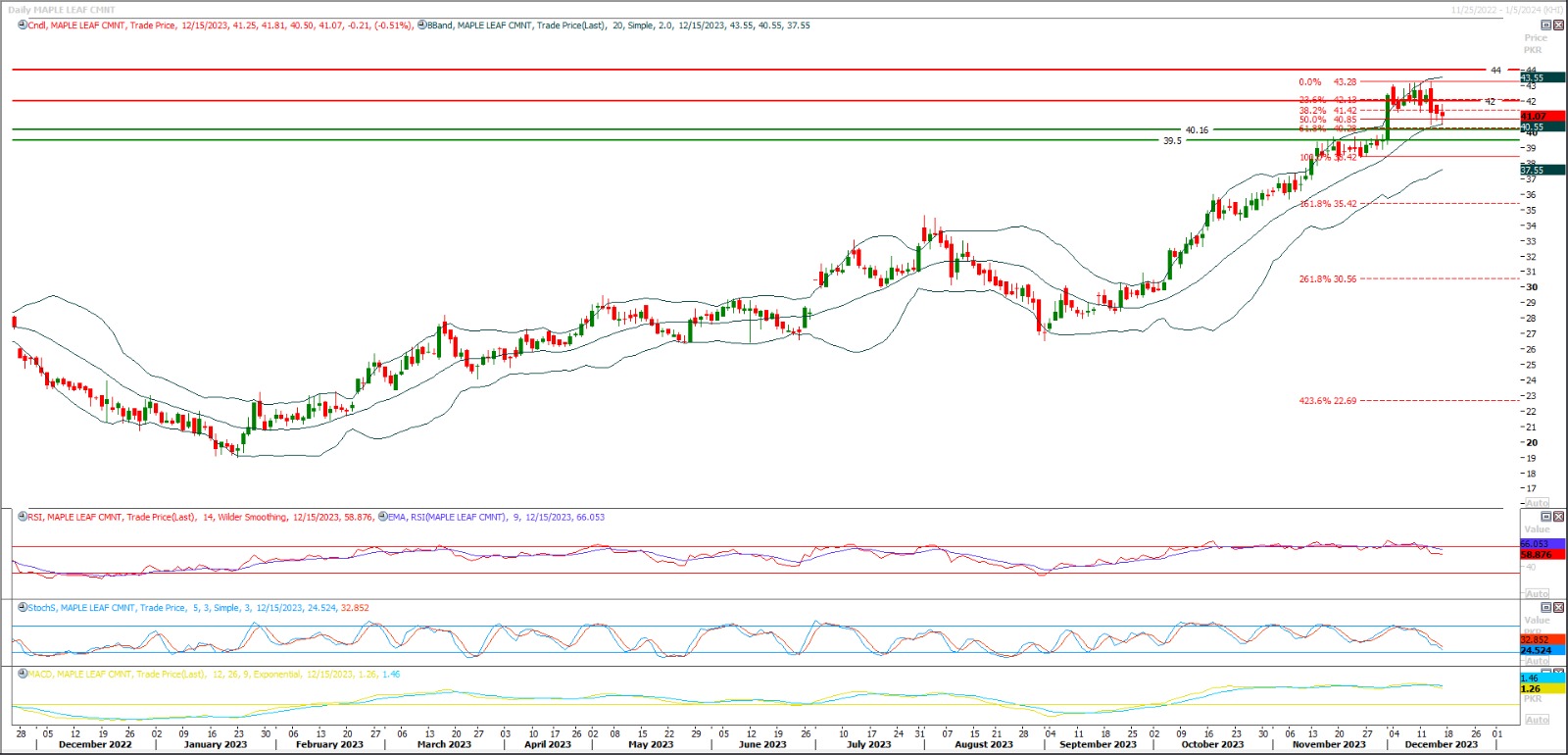 Buy as long as trading above 41.30 with strict stop loss of 39.50 and profit targets at 43.50 and 44.50. 45 would try to react as key resistant region for MLCF therefore it's recommended to stay cautious around this region.