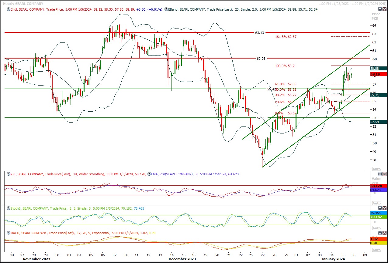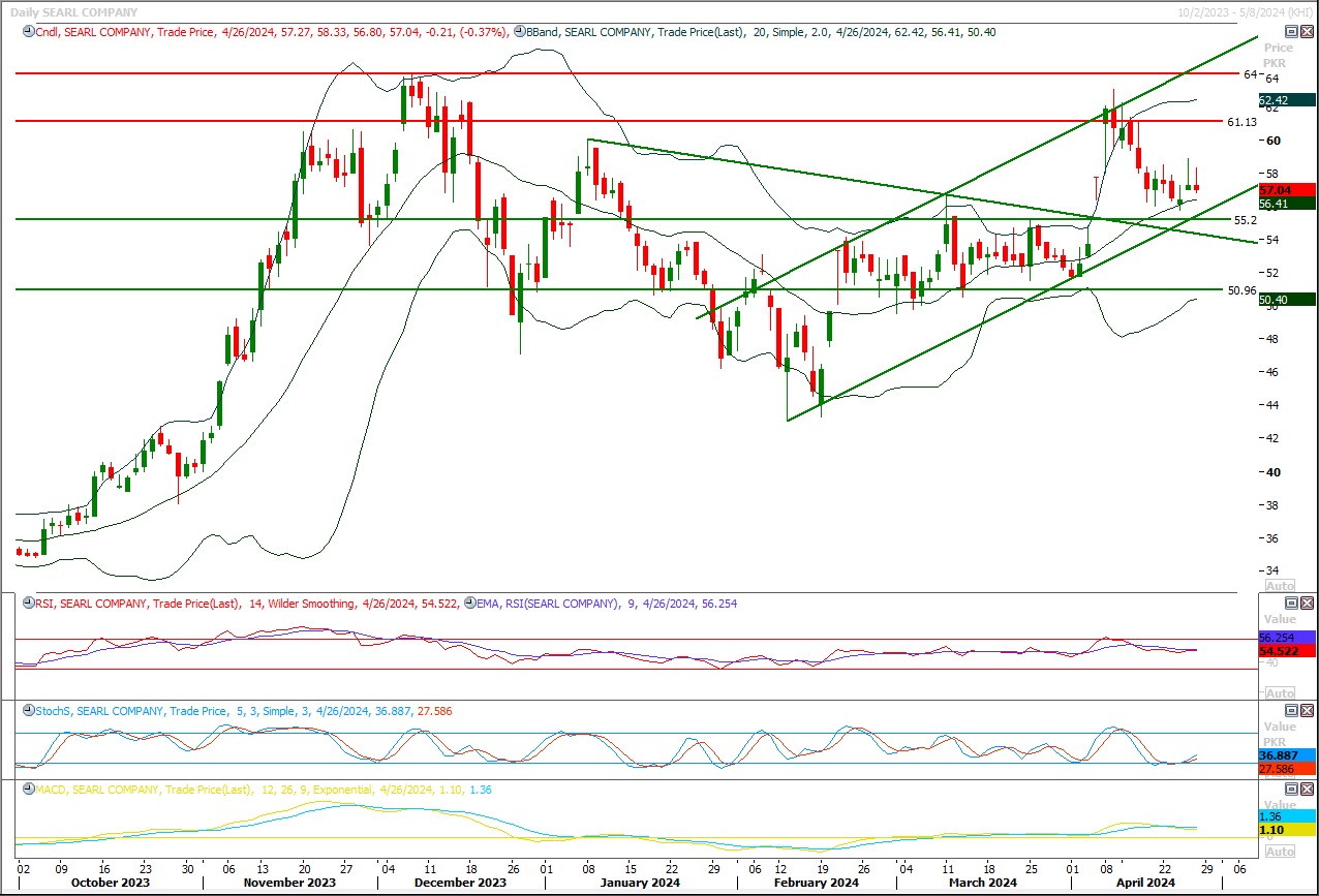 TECH NOTE: SEARL is coming towards its resistant region of 61 after stepping back and now it's expected that it would break this region and would try to target 63.50 and 65.
