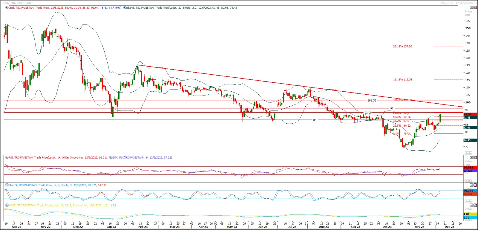 Buy TRG as long as trading above 91 with strict stop loss of 88 and profit target at 93 and 96 while breakout above 96 will call for 101 in coming days.TECH NOTE: TRG is trying to expand its last bullish correction towards 100% expansion level.